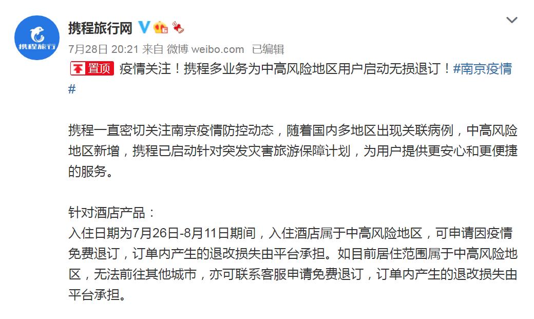 來源:攜程旅行網官方微博同程藝龍官方微信表示,凡是7月28日...